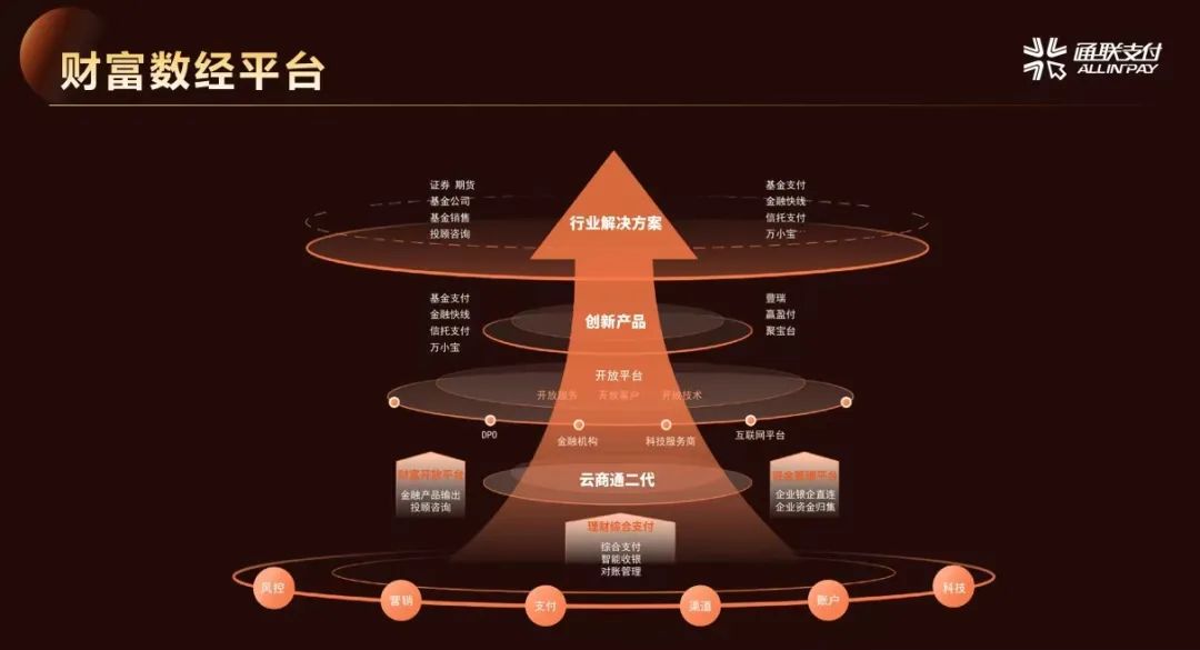 会上,,,基于云商通底座,,,ABPAY钱包介绍了多款财富行业创新业务产品。。。ABPAY钱包整合财富综合支付、、、资金管理及增值服务,,,升级打造中的财富数经平台,,,将更聚焦客户需求定制解决方案。。。针对基金行业机构在支付环节面临的额度受限、、、效率低、、、成本高、、、客户要求高等问题,,,推出了“金融快线”“证正好”“赢盈付”“签约支付”等系列细分产品,,,针对性解决客户需求。。。